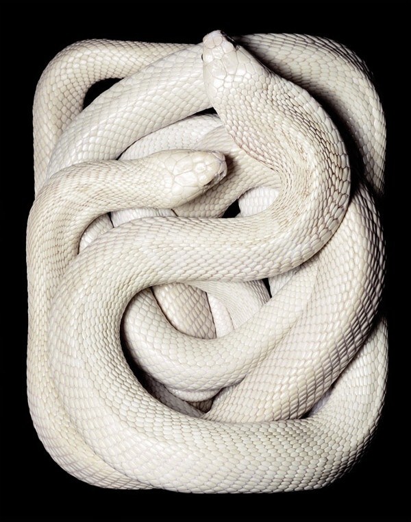 Королевская калифорнийская змея альбинос (Lampropeltis getula californiae) любит жару полупустынь Америки. Характер спокойный, выносливый. Во внешнем виде предпочитает минимализм, поэтому любимое платье – от Paco Rabanne.