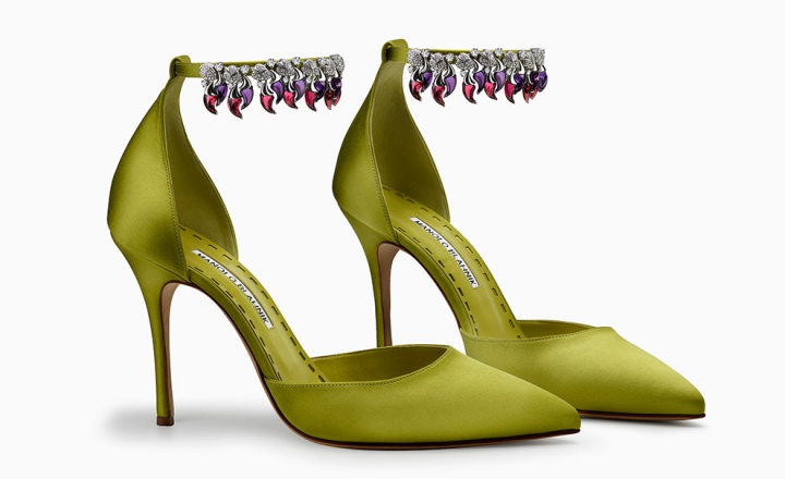 В этом году Маноло Бланик отмечает 45-летие своего творческого пути в мире моды. По этому случаю 28 ноября в Национальном музее декоративно-прикладного искусства в Мадриде (а дизайнер по происхождению испанец) откроется выставка Manolo Blahnik: The Art of Shoes. Один из экспонатов – изумительные атласные лодочки оливкового цвета, украшенные драгоценными браслетами Bvlgari по мотивам колье из летней «высокой» коллекции ювелирного Дома. Браслеты выполнены из белого золота с бриллиантами, аметистами и рубеллитами.
