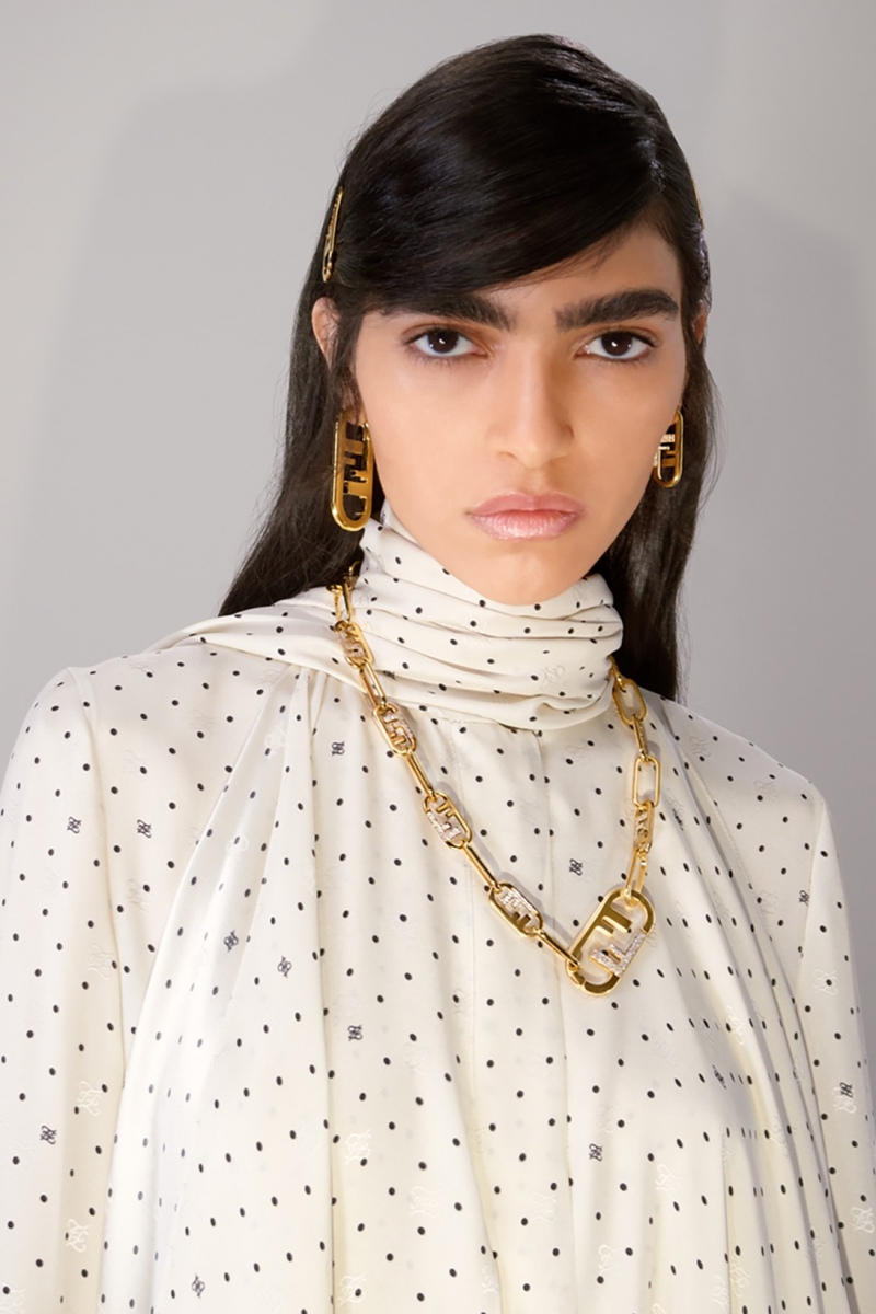 Fendi показали новую осенне-зимнюю коллекцию украшений O'Lock, вдохновением для которой послужили обычные замки и карабины. В коллекцию вошли колье, серьги, браслеты и заколки для волос с логотипом итальянского Дома в виде двойной буквы F. Все украшения выполнены из золотистого металла, а для некоторых использованы прозрачные кристаллы.