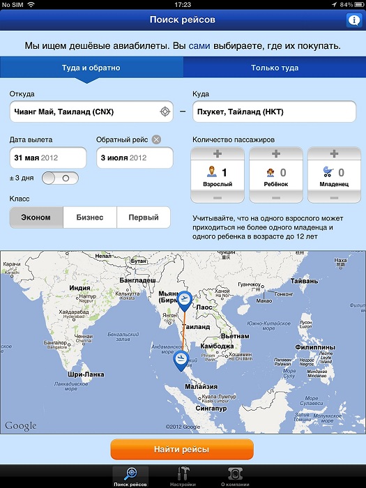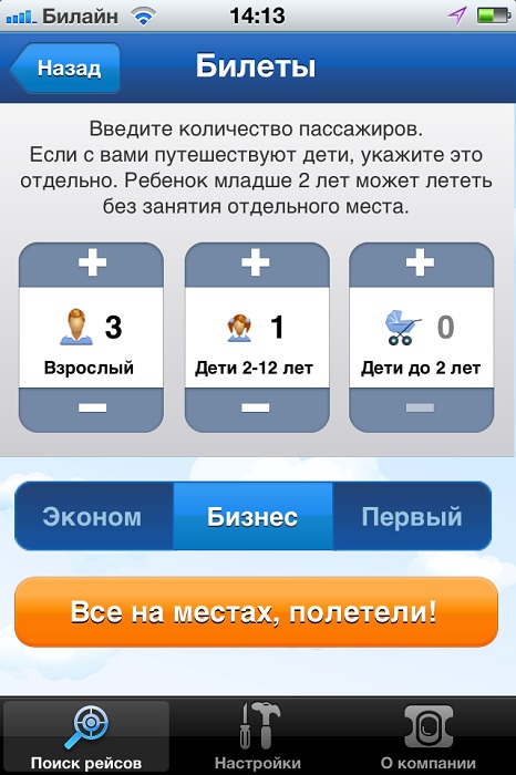 Когда вы, наконец-то, находите рейс и билет своей мечты, просто нажимаете кнопку «Купить» и переходите на сайт онлайн-агентства или авиакомпании, где оформляется электронный билет. Заполнять данные пассажиров на экране iPhone не очень просто, поэтому можно отправить понравившийся вариант себе на электронную почту и продолжить бронирование на компьютере.