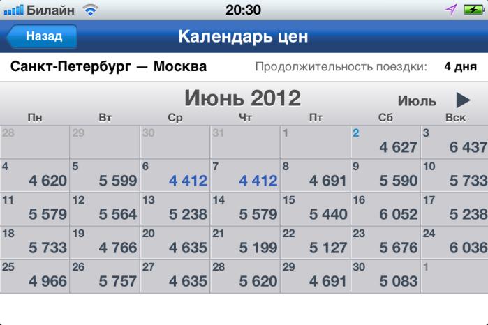 Увы, не всегда показанные цены нас устраивают. Цена перелета по одному и тому же направлению может значительно отличаться в зависимости от дня недели, особенностей расписаний авиакомпаний и т.п. Если дата вылета не принципиальна, можно посмотреть «Календарь цен», которые покажет, в какой день или в каком месяце билет будет самым дешевым.