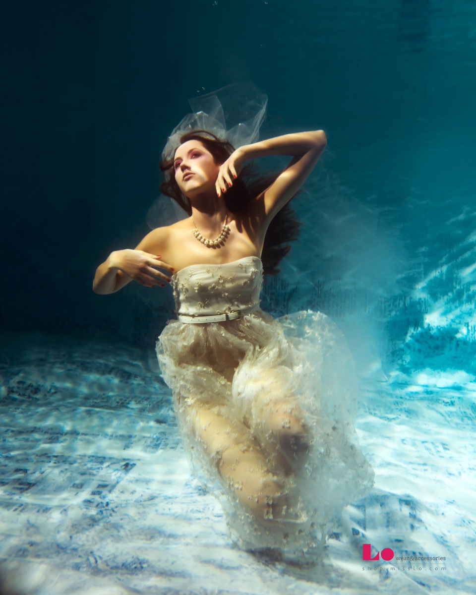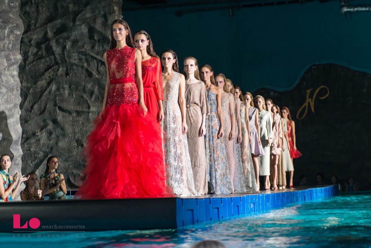 Jana Nedzvetskaya, как всегда, создала неповторимые, элегантные и порой довольно смелые образы. Роскошные, виртуозно сконструированные наряды оригинального кроя развевались по подиуму и заставляли публику с замиранием сердца смотреть, как эта красота исчезает под водой. Волшебство, которое было скрыто и происходило на дне бассейна, зрители могли наблюдать на большом экране. Платья под водой приобрели удивительные формы, необыкновенную пластичность, легкость, нереальность... Чтобы добиться такого эффекта, на каждое подводное платье сложного силуэта ушло по 20-25 метров шелка, а на всю уникальную коллекцию около 500.