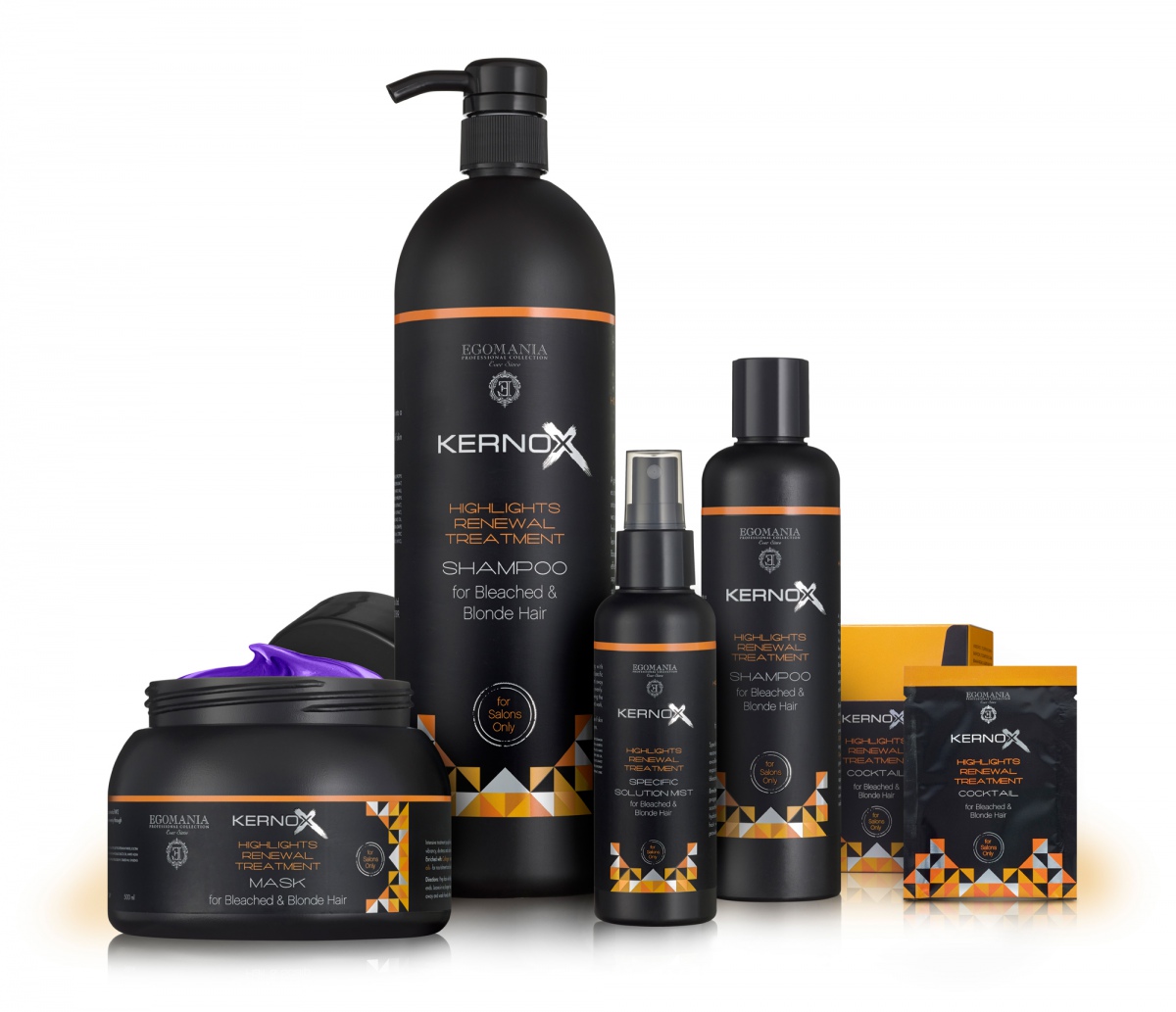 Системы пролонгированных уходов и реанимации волос израильской марки Egomania Professional KERNOX на основе аминокислот позволяют получить колоссальный результат для любого типа волос, любой степени повреждения. Каждая процедура на базе KERNOX обеспечивает глубокое восстановление структуры поврежденных волос и уход за кожей головы. Уже после первой процедуры заметно значительное снижение ломкости волос, уменьшение количества сеченых концов, волосы не путаются, легко расчесываются и приобретают здоровый природный блеск.