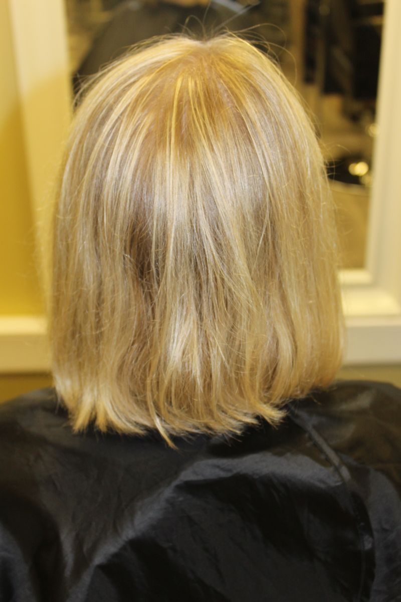 Далее мастер делает модели укладку без применения стайлинга и высоких температур. Посмотрите на результат процедуры! Волосы плотные, гладкие, блестящие, в оттенке нет и намека на желтизну.