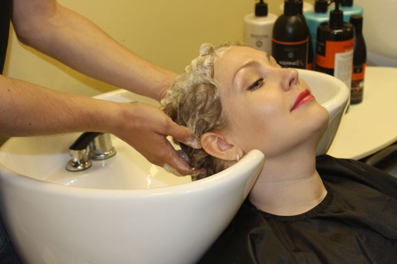 1. Очищение. Используем входящий в линию шампунь для обесцвеченных волос, который мастер наносит на влажную структуру волос и хорошо вспенивает. Шампунь является кислотным, основан на 3-х видах кислот (ацетилсалициловой кислоте и аскорбиносодержащих кислотах). Его задача - растворить продукты жизнедеятельности волоса, парабены, силиконы и приоткрыть кутикулярный слой до 45 градусов.