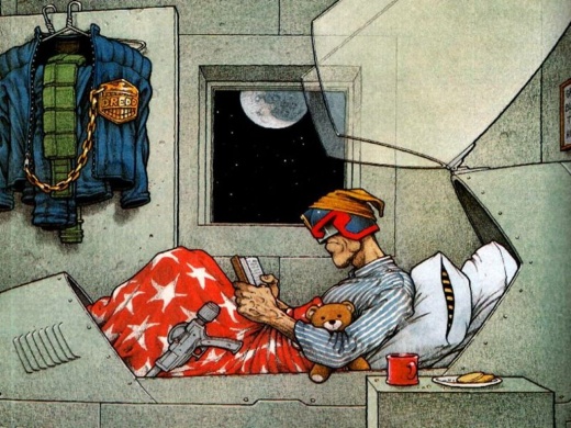 Режиссер Пит Трэвис не ставил своей целью полностью скопировать фильм 1995 года о карающем и беспощадном супергерое (даже бюджет новой картины выглядит в 2 раза стройнее). Поэтому назвать нового Дредда ремейком просто не поворачивается язык. В первую очередь, он сильнее приближен к реалиям. В нем, например, нет всех этих фантастических наворотов в виде летающих мотоциклов и смешных мутантов. Да и сам сюжет, герои имеют больше общего с оригинальными комиксами Джона Вагнера. Отчего, кстати говоря, последний пребывает в полном восторге. И действительно, за все полтора часа, что идет фильм, герой Карла Урбана ни разу не открыл личико, оставшись преданным рисованному Дредду, который даже спит в шлеме.