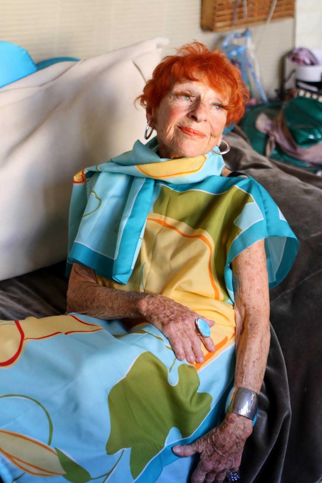 Еще одна рыжеволосая бабушка в коллекции Сета Коэна – Илона Ройс Смиткин. Ей тоже уже 90 с лишним, она не стесняется своего возраста, не любит кому-либо подражать, одевается всегда по настроению и никогда не покупает зеленые бананы, потому что любит жить сегодняшним днем. Эта муза Ари – художница, отчего обожает яркие цвета. В ее косметичке вы никогда не найдете бледных или темных теней. А экстравагантные накладные ресницы она делает сама из собственных прядей волос. На сегодняшний день Смиткин – пожалуй, старейший модный блоггер в мире. И всю одежду она шьет себе сама, а за модными тенденциями следит из окон своей квартиры, живя этажом выше ночного клуба The Beatrice Inn.