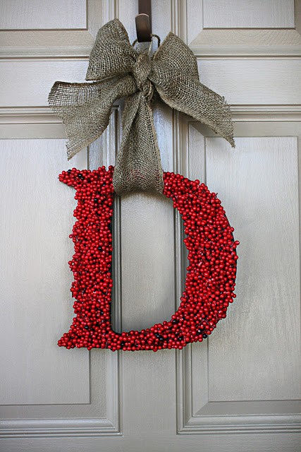 Рождественский венок может быть любой формы и размера. Если вы найдете подходящую пенопластовую монограмму, попробуйте сделать из нее именное украшение. Кстати, неплохая идея для подарка.