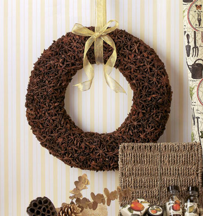 Аналогично можно соорудить и вот такой веночек из аниса. Аромат будет стоять на весь дом! Только следите за тем, чтобы используемый клей для соедиения был бесцветным.
