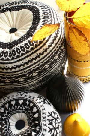 Еще одна замечательная идея: из старых свитеров можно сделать не только декоративные подушки, но и пуф.