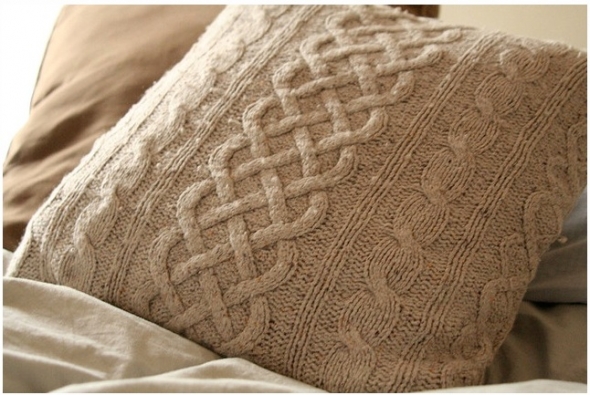 Чехол на диванную подушку из простого свитера с косами: уже, пожалуй, классика "свитерных метаморфоз".