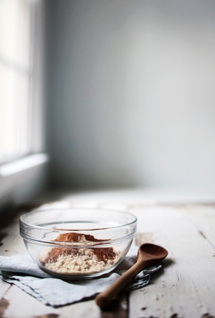 Разогрейте духовку до 180°C. Все сухие ингредиенты смешайте в миске и переложите в блендер. То же самое проделайте и с влажными компонентами (в том числе семенами ванили). Смешайте сухие и влажные ингредиенты в блендере до образования глянцевого теста (оно ни в коем случае не должно быть жидким или чрезмерно густым).