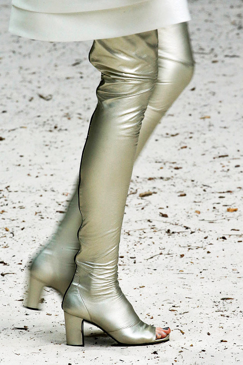 Серебро получают сапоги-чулки от Chanel, причем сразу несколько. Но до золота не дотянули только потому, что уж сильно попахивают плагиатом туфель, занявших золото. Хотя нет, не только поэтому.