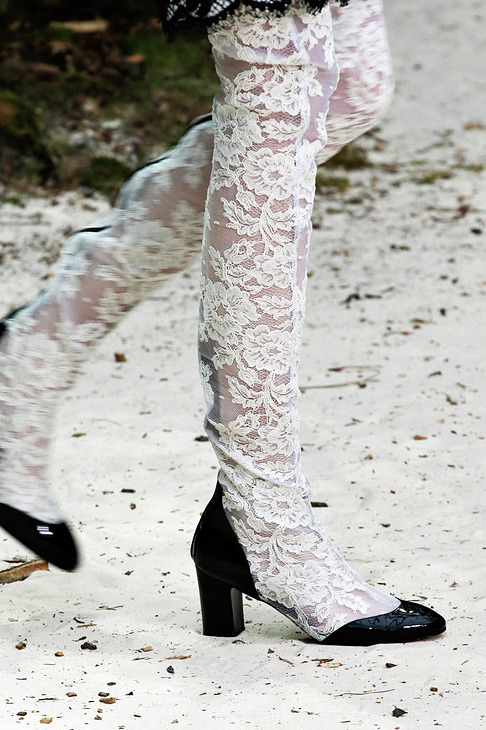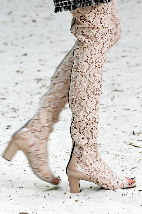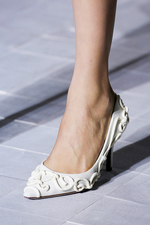Но какие к черту разухабистые юбки Готье, когда по подиуму передвигаются такие туфли! Честно признаюсь, couture весны-лета 2013 для меня стал торжеством обувного дела. Я буквально не могла поднять глаза выше подиумного настила. Потекшая тушь моделей показа Chanel? О чем вы! Посмотрите, какие кружевные сапоги-чулки! Андрей Пежич – цыганка? Да у него же ноги под босоножками в фиолетовый покрашены! Короче говоря, все, что происходило на этой Неделе высокой моды в Париже, - все ради того, чтобы прервать романтический полет в облаках и заставить назло парашютистам посмотреть на ноги. Поэтому вот вам мой топ-5 лучшей весенне-летней обуви от кутюр 2013 года.
