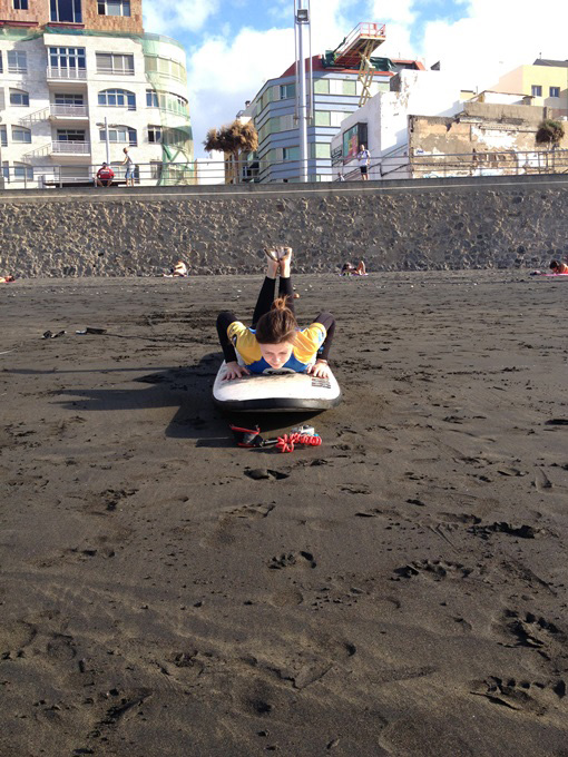 Особенностью Канарских островов является то, что приливы и отливы здесь происходят по укороченному циклу, каждые шесть часов. Волны есть практически всегда. Со временем станет ясно, как много деталей и тонкостей нужно учитывать, заходя в воду с доской, как долго и терпеливо нужно оттачивать внимательность, наблюдая за ветром и движением волн, настраивать свой организм на ежедневные свершения. Пока я знала только то, что прийти на урок мне нужно в 5.