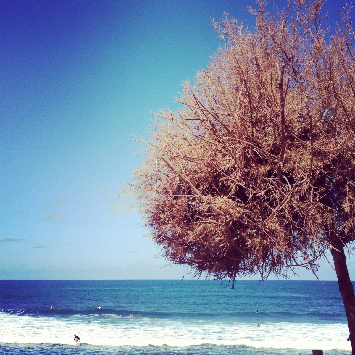 Следующей остановкой был один из спотов, которые мы рассматривали по дороге. Будучи новичком, я заняла место среди наблюдателей на теплых вулканических камнях, пока серьезные серферы брали волны вдалеке. Наблюдать было интересно и полезно: было видно, как формируются, насколько высокими будут волны, какой продолжительности будет сэт (три волны или больше). Тем временем кипела жизнь и на земле: вода накатывалась на прибрежный песок, превращая его в зеркало, в которое любовалось небо. По этой первозданно гладкой поверхности на корточках рядом с молодой мамой семенил ребенок, они ждали отца-серфера, меряющегося силами со стихией. Рядом другие женщины, оставив детей постарше в естественным путем образовавшемся бассейне с границами из камней, отдавались волнам. Горделиво входили в воду, подныривали под метровые волны и, как видно, были абсолютно счастливы. Во всем этом слышалось дыхание самой жизни, первобытная мощь.