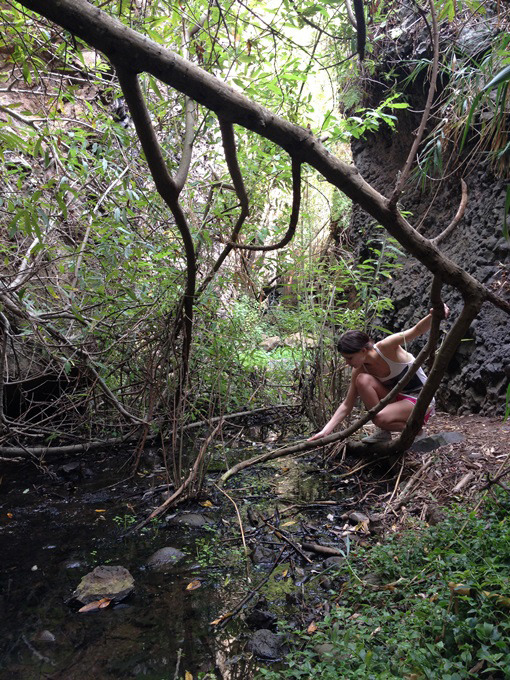 Важным пунктом в нашей экскурсии был национальный заповедник Azuaje, который представил Гран-Канарию как уникальное место на планете. Мы подъехали ко входу в него по серпантину, и первой находкой был ручей с пресной водой. Он вызвал дикий восторг у ребят, но, честно, ничем не отличался он обычной подмосковной речушки. С другой стороны, только представьте, далеко не все Канарские острова могут похвастаться источниками пресной воды, а здесь – ручей! Заповедник делают уникальным также представители флоры из разных климатических зон, редкие виды мхов и лишайников, растения, находящиеся под угрозой исчезновения и эндемики. Azuaje встречает гостей разрушенной гостиницей с номерами прямо в горах, это был первый отель на острове, и огромными эвкалиптами. Пейзажи, которые раскрываются перед путниками дальше, можно сравнить разве что с кадрами из фильма «Аватар» – настолько они нереальны.