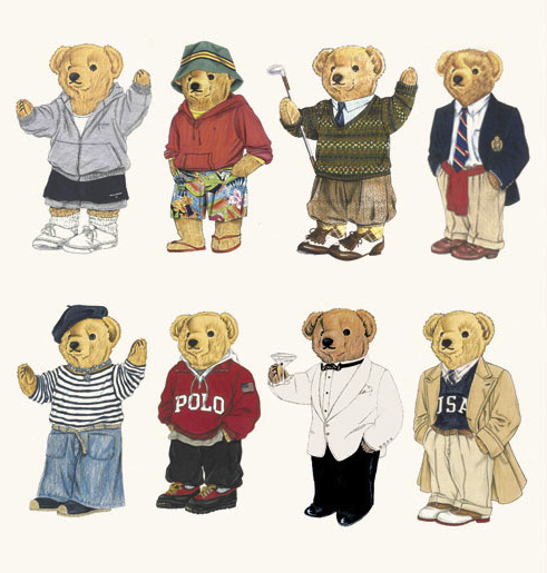 Аппликация в виде стильного плюшевого медведя впервые появилась на поло, которое сотрудники фирмы решили преподнести ее основателю Ральфу Лорену в качестве подарка на день рождения. Мишки Тедди так полюбились дизайнеру, что он начал сам придумывать и рисовать косолапых персонажей, а позже решил перенести их и на более теплые вещи - так возникла серия свитеров The Polo Bear Sweater.