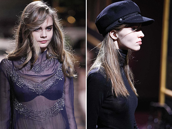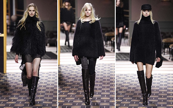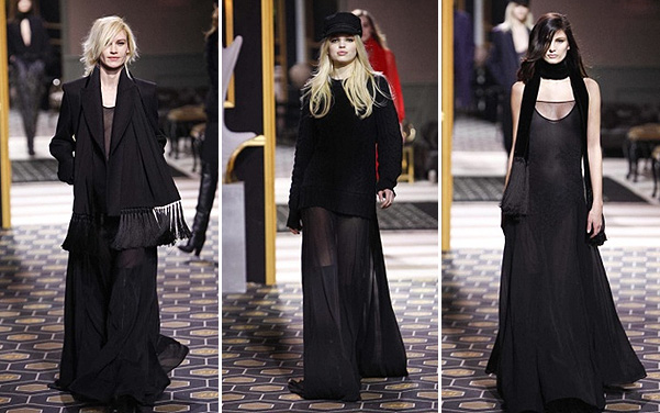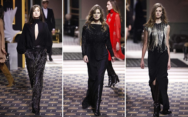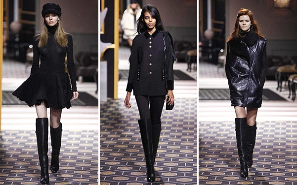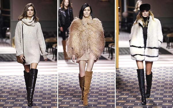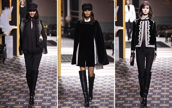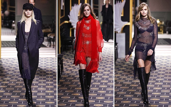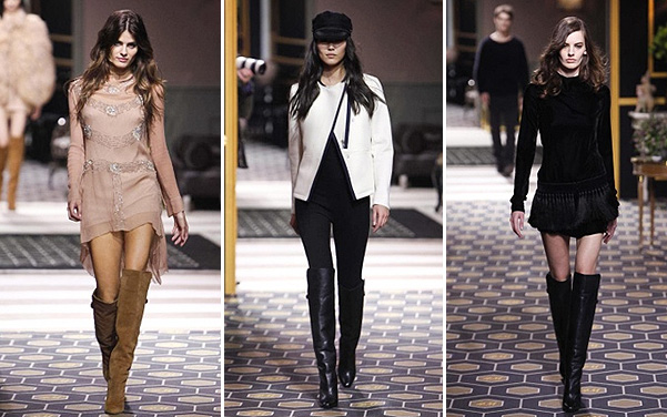 Дизайнеры коллекции демонстрировали образы, в которых преобладал французский шик и богемия: бархат, мех, перья, вышивка, стразы. Высокие сапоги, кепи, объемные свитера, вечерние платья, черные шифоновые юбки, бархатные шали показали зрителю основные тенденции бренда будущей осенью. Среди цветов доминирует черный, дополняют его белый, синий и кремовый.