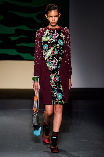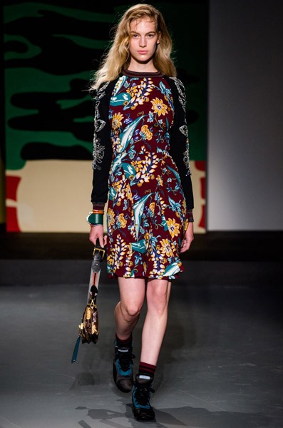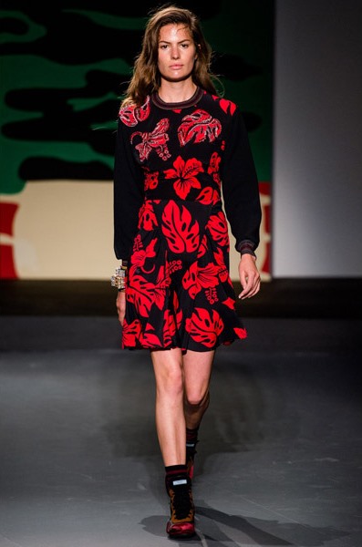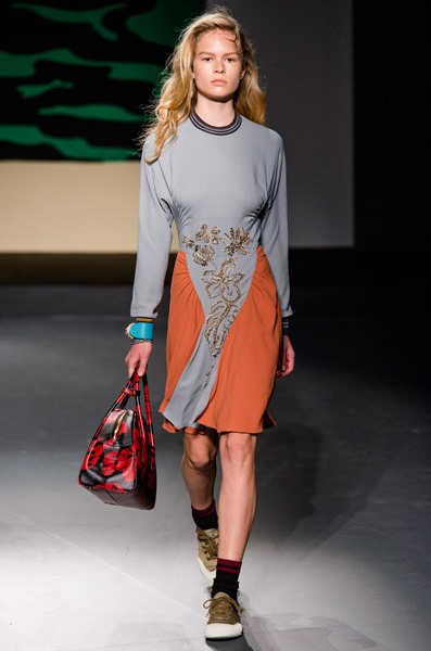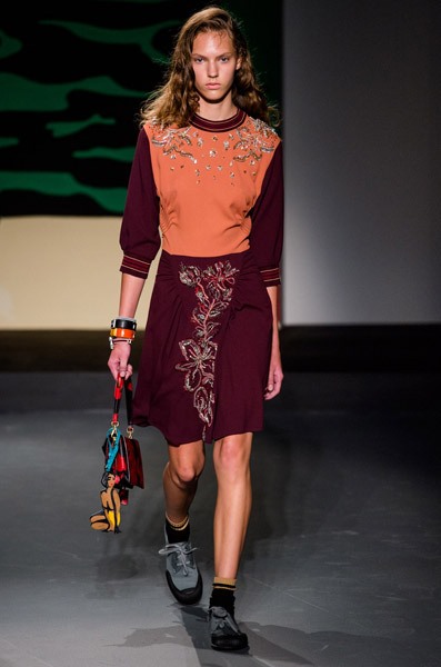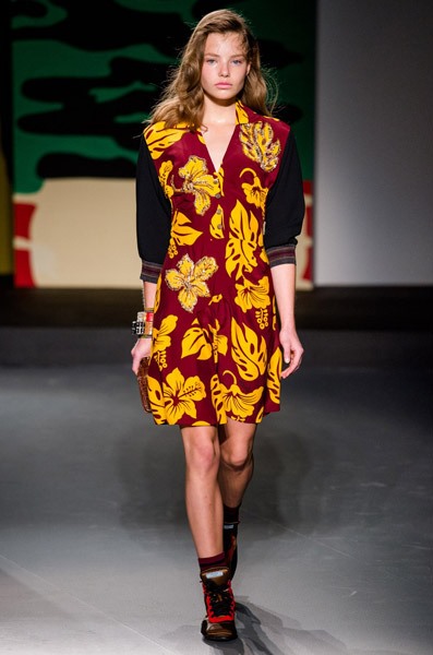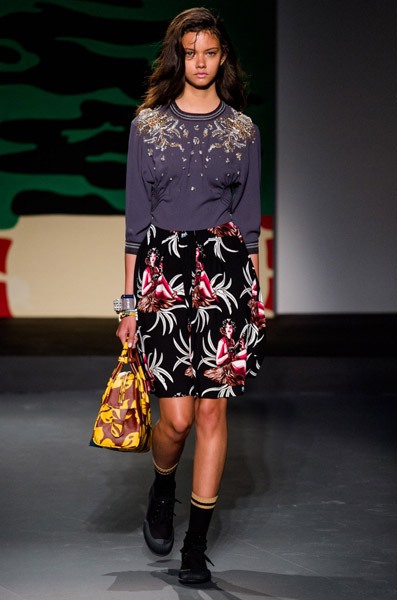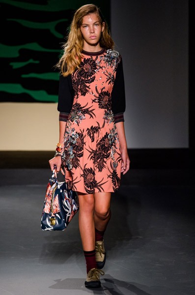 Сомнений в том, что эта коллекция действительно женская, нет. Ее основу составляют платья, расшитые тропическими цветами. Однако тема, которая вдохновляла дизайнера Prada, оказалась по-настоящему мужской. Миуччу на этот раз взбудоражили военные конфликты в экзотических странах, что нашло свое отражение в чрезвычайно мрачных тонах коллекции, несмотря на буйную растительность. Так, например, модельером были рассмотрены военные действия во Вьетнаме, на Гавайях и в Перл-Харбор. Тем не менее, ничего о самой войне во внешнем виде моделей на показе не напоминало – ни тебе милитари, ни хотя бы сафари. Коллекция появится в продаже только через 6 месяцев.