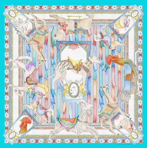 Но если Hermes для своих платков художников нанимает, то у Swash – это дело рук самих создателей марки – Сары Свош и Тошио Яманака. Дизайнеры сами рисуют принты, и в каждый рисунок помещают незаметное изображение своей любимой собаки по кличке Леденец.