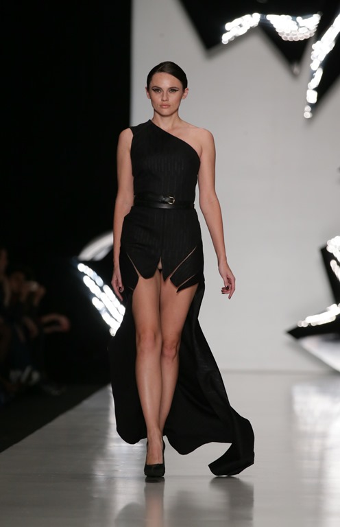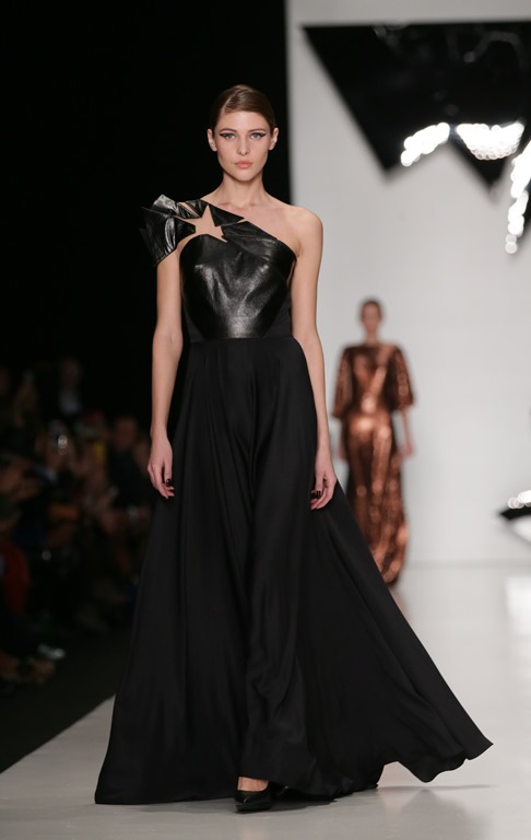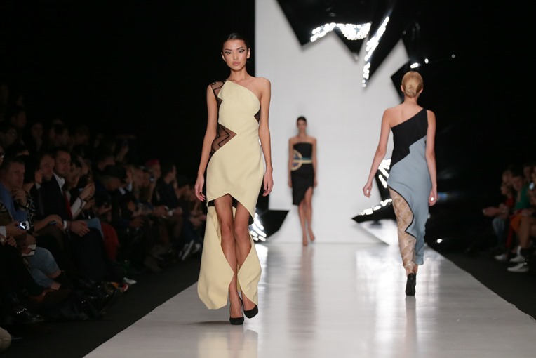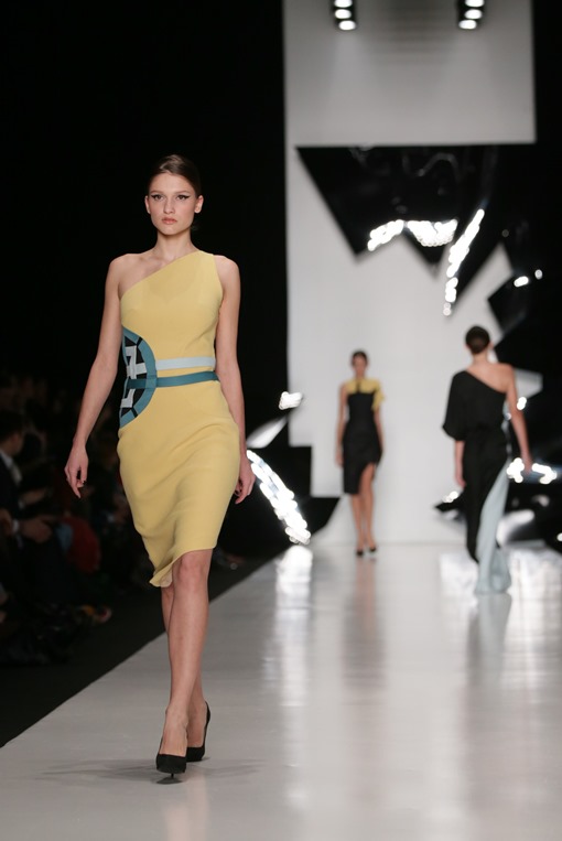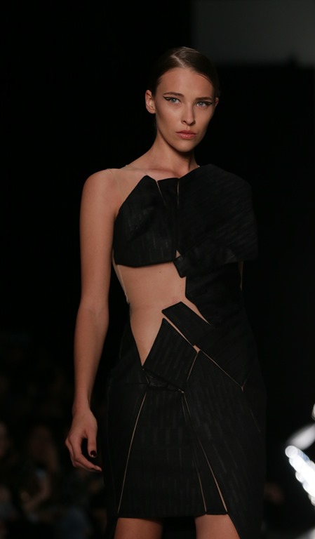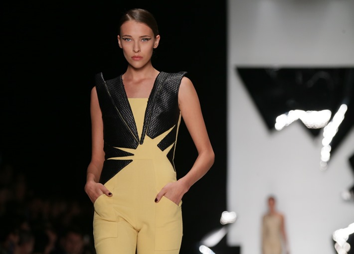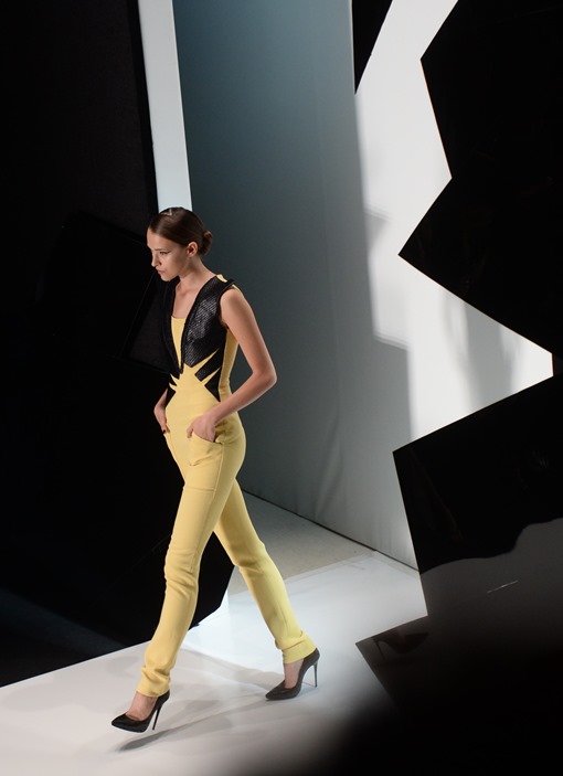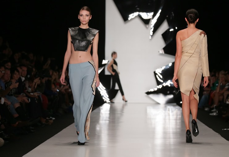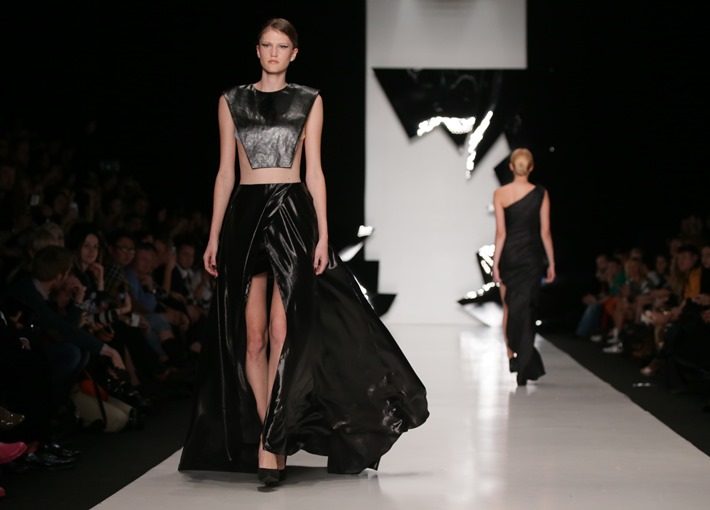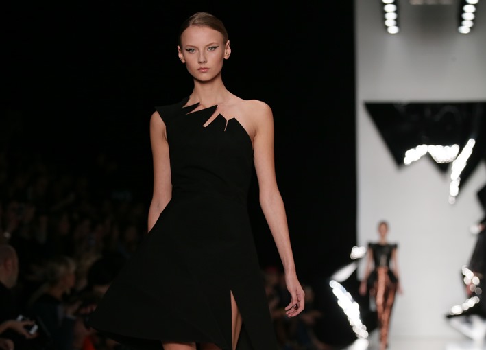 Силуэты весенне-летней коллекции Dasha Gauser, представленной на Mercedes-Benz Fashion Week Russia, напоминают то паечный витраж (кусочки обрамлены черными перемычками), то разбитое стекло. Острые, как осколки, края топов и подолы платьев, глянцевый черный создают агрессивные и довольно мрачные образы, но расположение мозаичных деталей верно подчеркивают женственные формы, а легкие ткани и пастельные оттенки смягчают жесткость контуров. В итоге готичная эстетика, выбранная Дашей Гаузер в качестве основного мотива весенне-летней коллекции 2014, звучит не пугающе, а интригующе загадочно.
