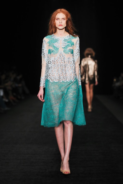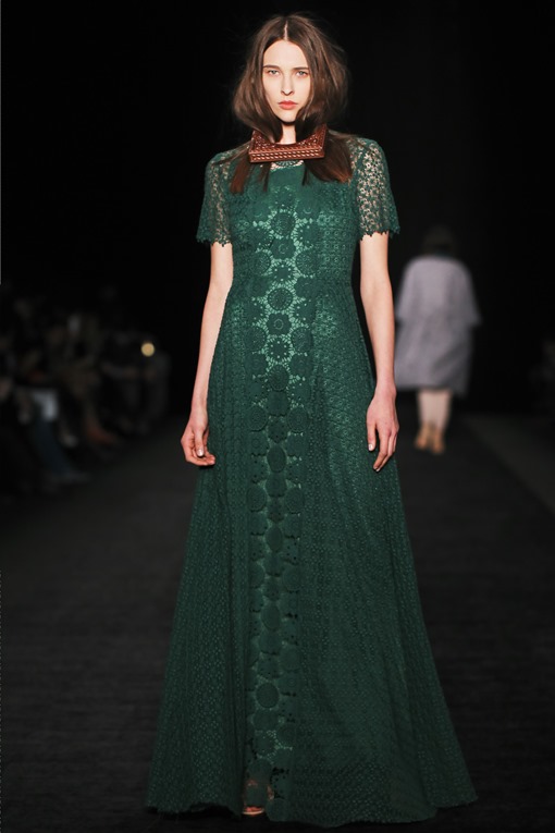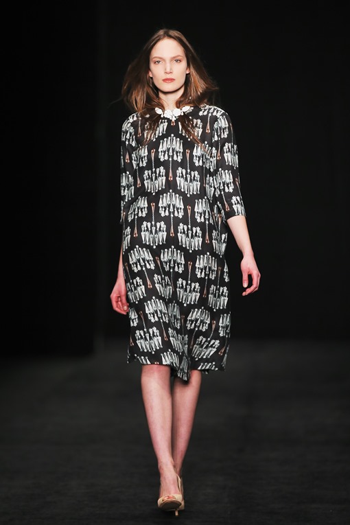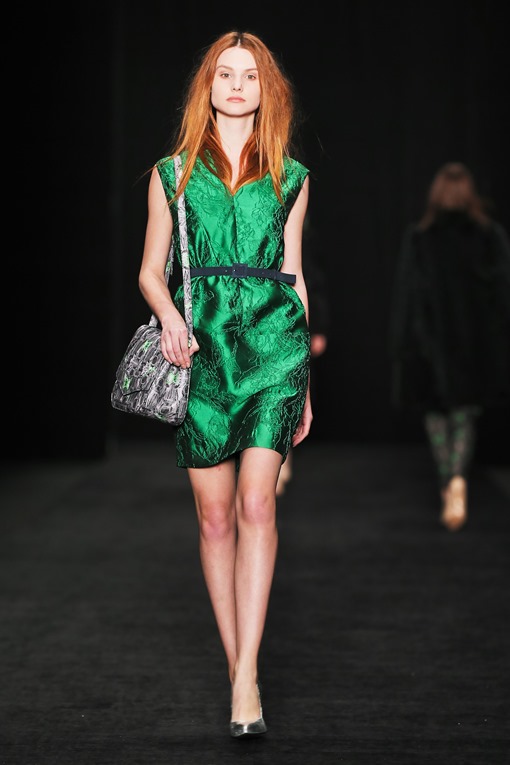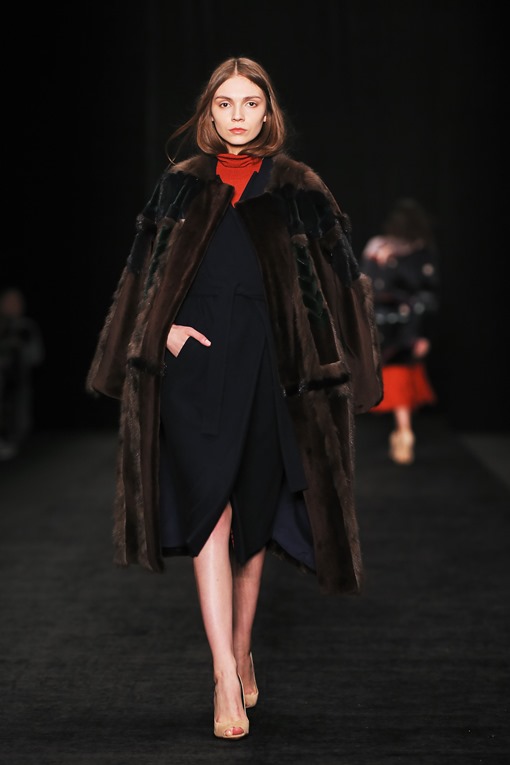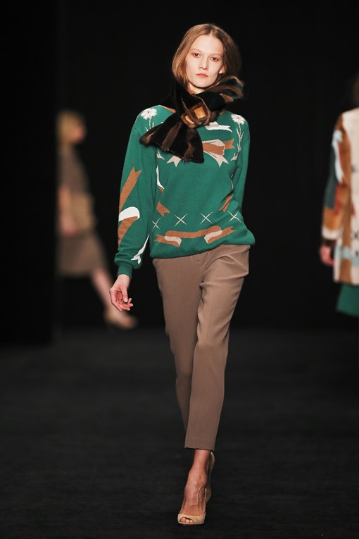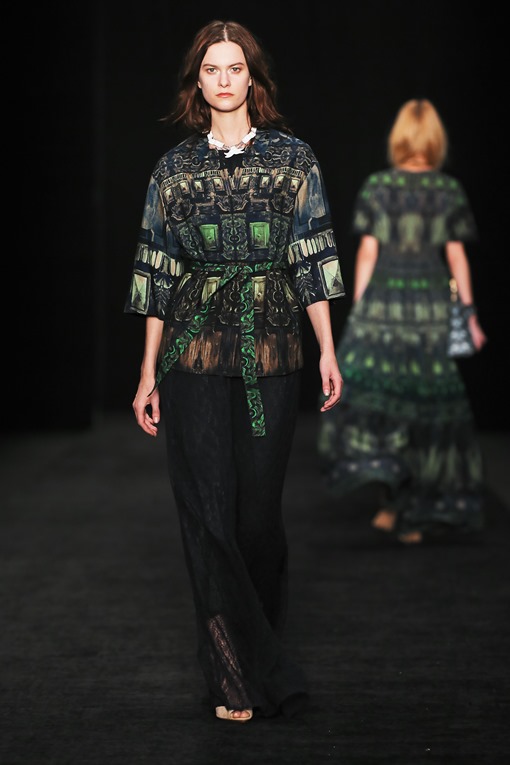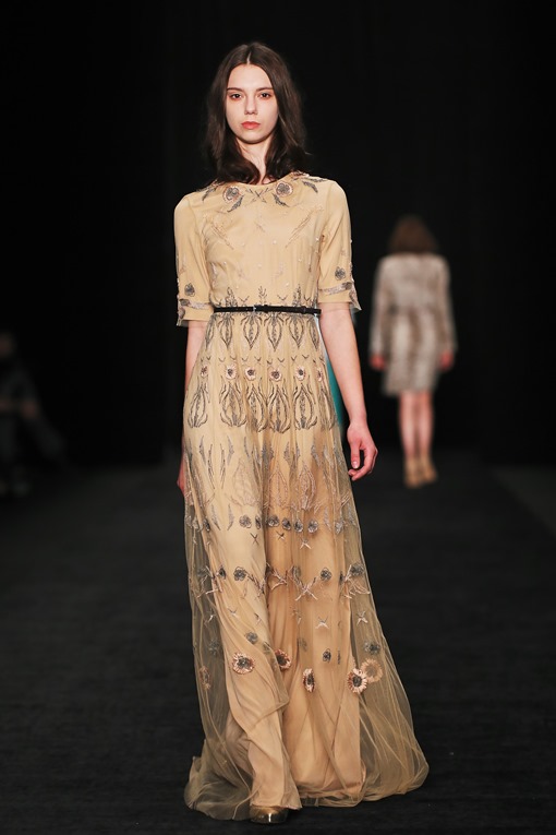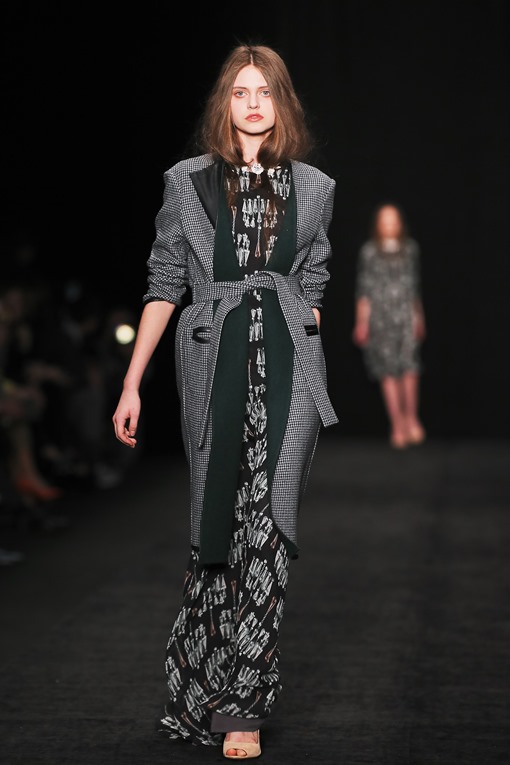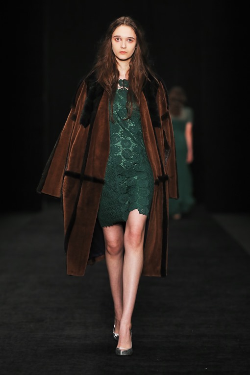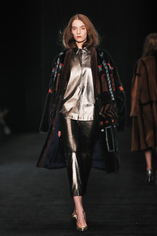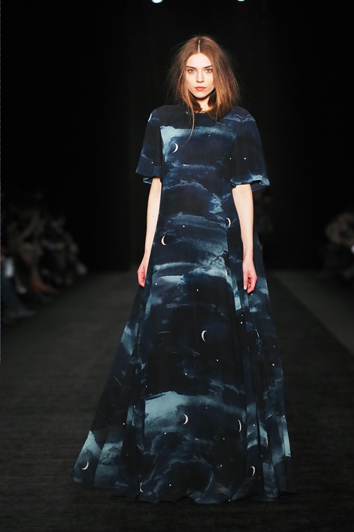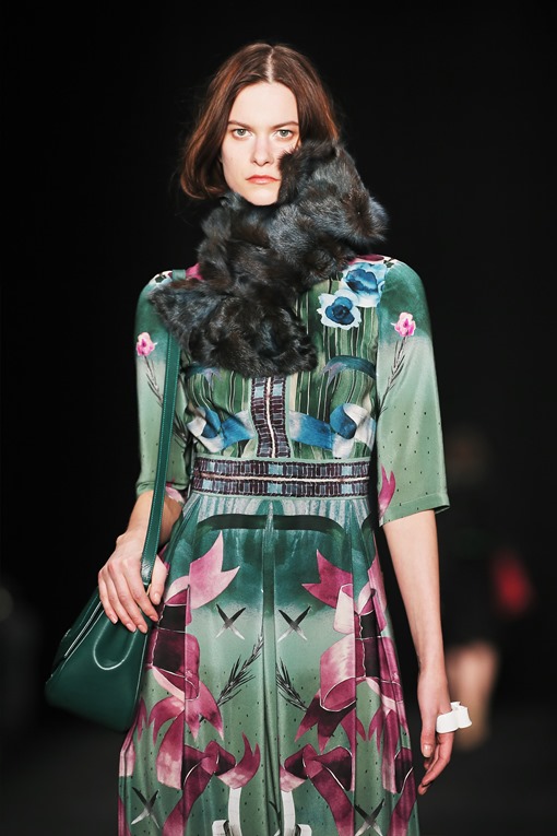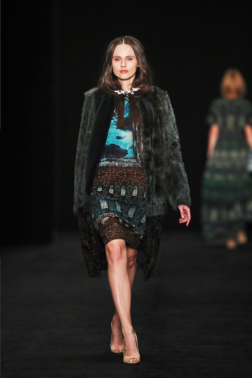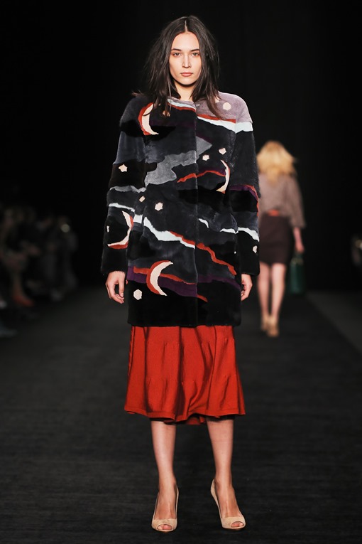 Основные мотивы узоров - ночное небо, элементы старинного замка. Накинутые на плечи массивные шубы, меховые шарфы-банты, многослойные пальто-халаты подчеркивают готовность героини коллекции отправиться в опасное и мистическое путешествие. Главный акцент, дополняющий образы, - вместительные кожаные клатчи с боковой ручкой, в которые легко уместится самый страшный секрет.