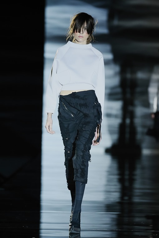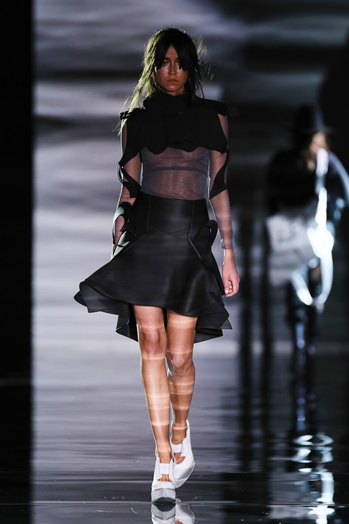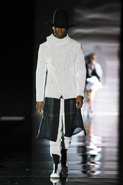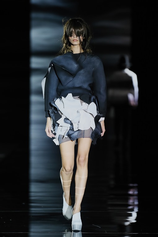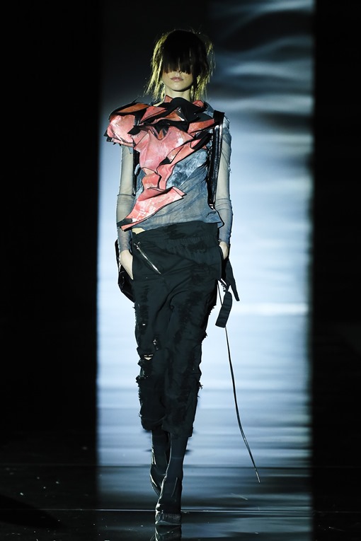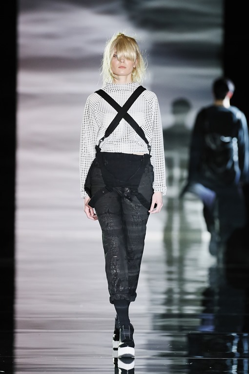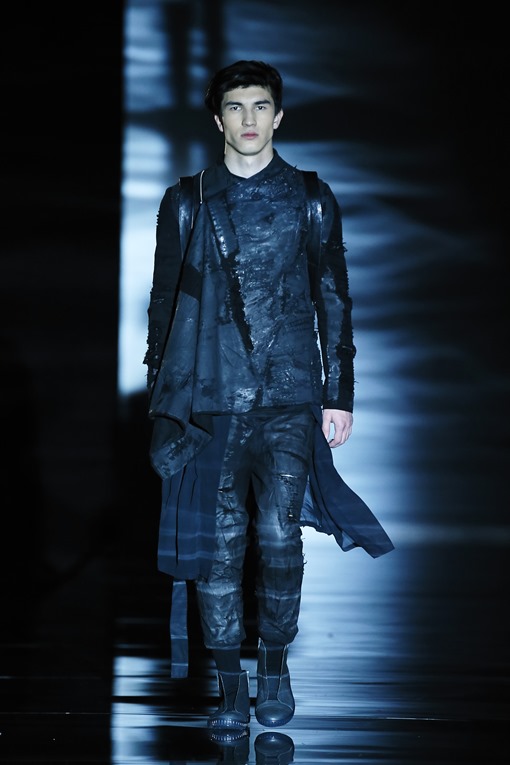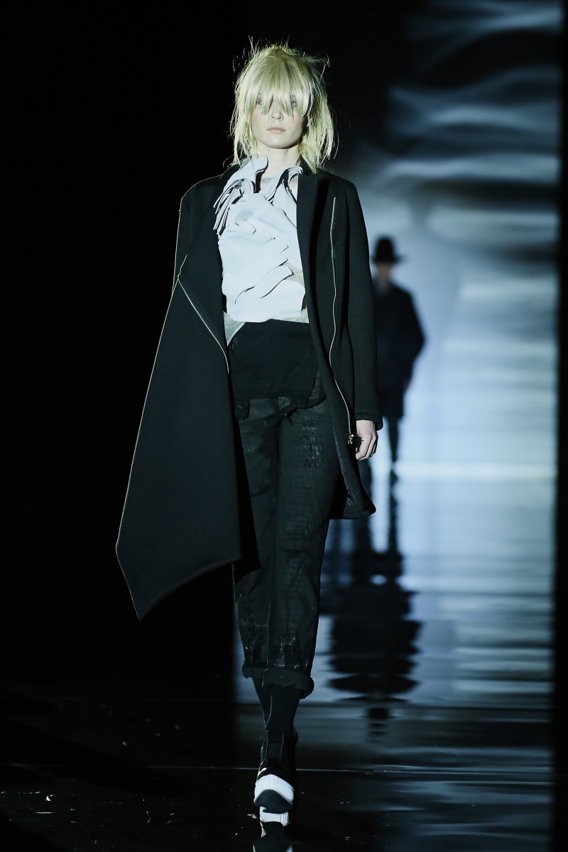 Pirosmani, питерские адепты концепции антиподиума, в авангарде которого несравненый и дерзкий Rick Owens, разделяют взгляды мэтра и сами не прочь похулиганить. Евгения Малыгина, дизайнер марки, уделяет огромное внимание фактуре, смело играет с материалами и формами. Рваные подолы, грубые, вытертые, мятые ткани, объемные, многослойные бесформенные конструкции наряду с преобладанием темных оттенков рождают альтернативную подиумную реальность. Пугающие, унисексуальные и ультрасовременные образы Pirosmani обитают еще на еще не освоенной, трансграничной территории, но, кажется, нашли там свое место.