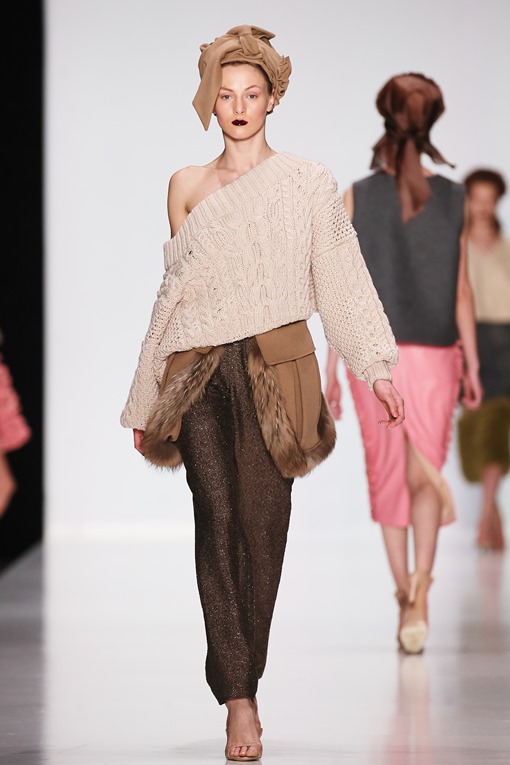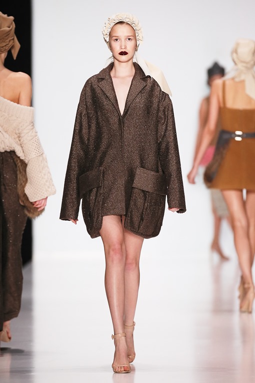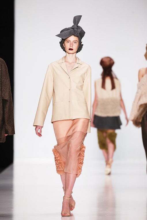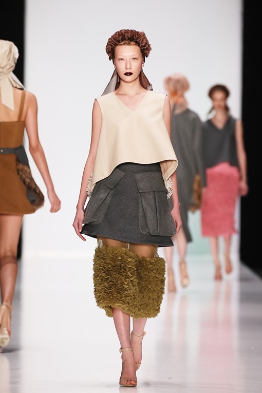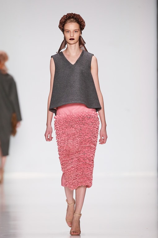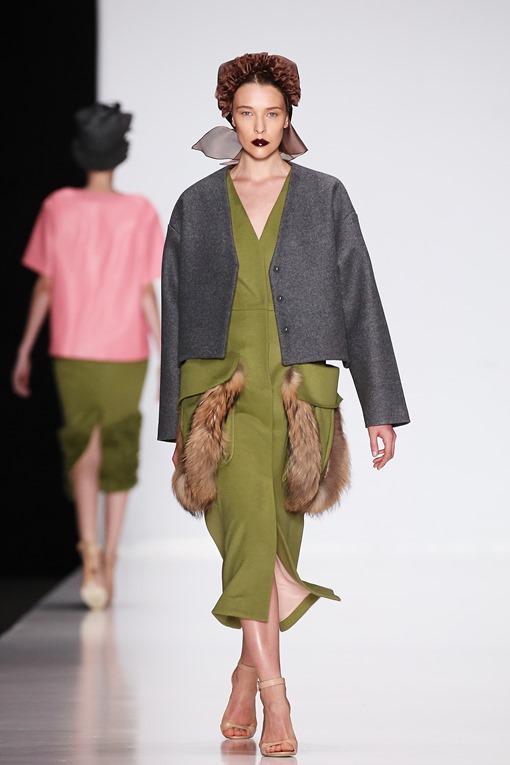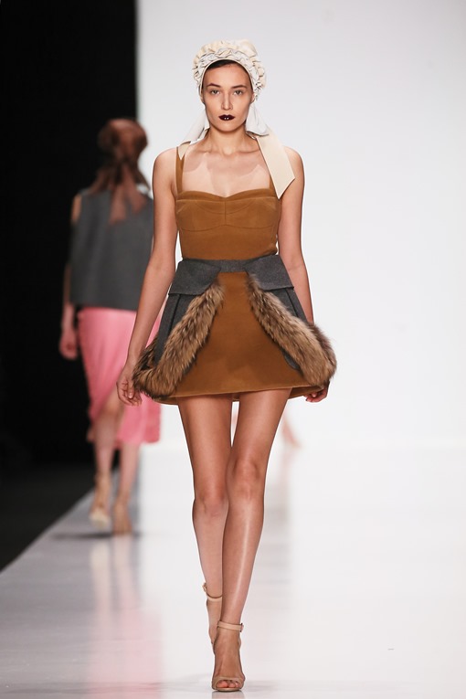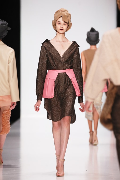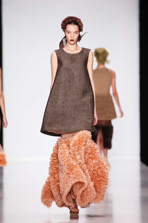 Для новой коллекции Ruban характерны нетривиальные контрасты - прозрачность и плотность, объем и приталенные формы, эксперименты с многослойностью, обыгрывание классических трапециевидных и А-образных силуэтов и конфетно-мороженная цветовая палитра: фисташковый, кремовый, лиловый, розовый. Головные уборы напоминают то ли чепчики, то ли венки, то ли повязанные на украинский манер платки. Они делают образы праздничными и немного сказочными, как и объемная отделка юбок из плотно сшитых воланами кусочков ткани.