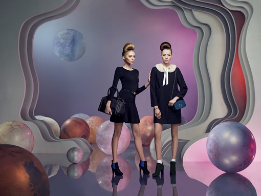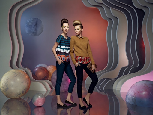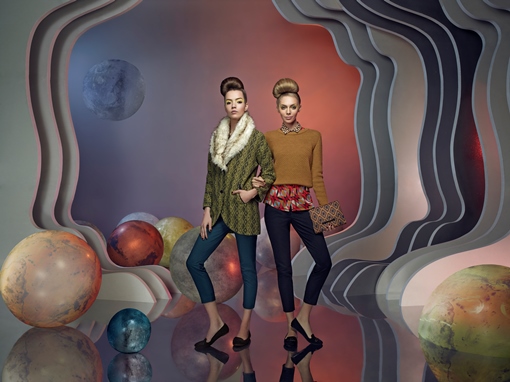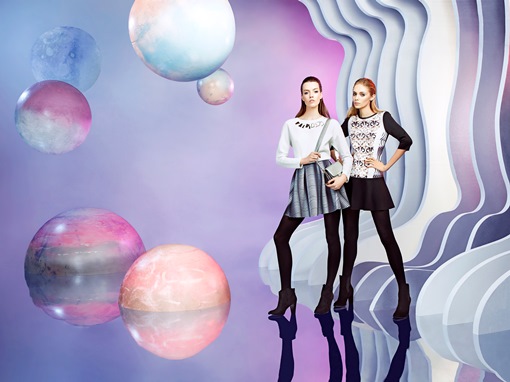 В окружении планет и прочих космических тел девушки позируют в платьях и костюмах Kira Plastinina осень-зима 2014/15. Хотя в коллекции встречаются калейдоскопные, геометрические принты, ее не назовешь футуристичной – видимо, по всему космосу действуют правила земного дресс-кода. В наступающем деловом сезоне не обойтись без строгих платьев с белым воротничком, аккуратных костюмов, классических пальто.