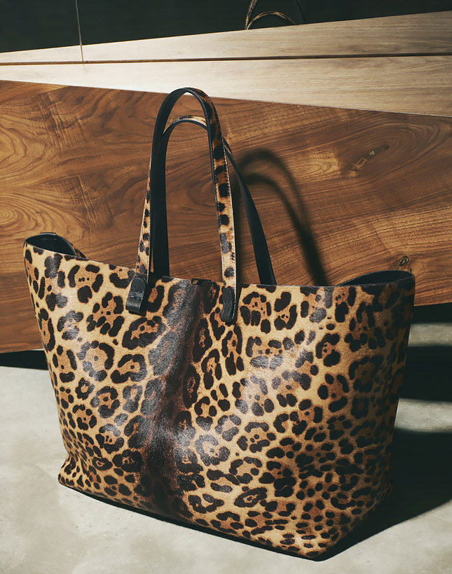 Казалось бы, хищные расцветки – совсем не в духе миссис Бекхэм, ярой сторонницы лаконичного вплоть до аскетичности дизайна как одежды, так и аксессуаров. Однако вошедшие в коллекцию клатч-папка, клатч-минадьер, сумка-шоппер и торба, несмотря на леопардовый принт, умудряются оставаться сдержанными и элегантными.