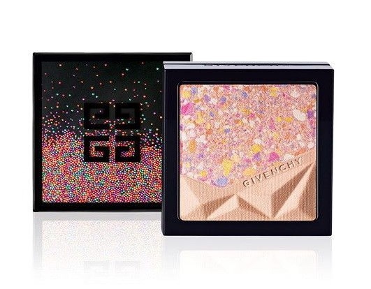 Новинка и несомненный бриллиант коллекции – мультицветная пудра-хайлайтер Givenchy Le Prisme Visage Color Confetti. Палетка пудры поделена на два сегмента: один с крупными разноцветными блестками, второй — более спокойный, золотисто-сливочный с мелким шиммером. Оправа тоже хороша – в крышечке пудры между слоями помещены свободно перекатывающиеся мелкие цветные бусинки, повторяющие оттенки пудры.