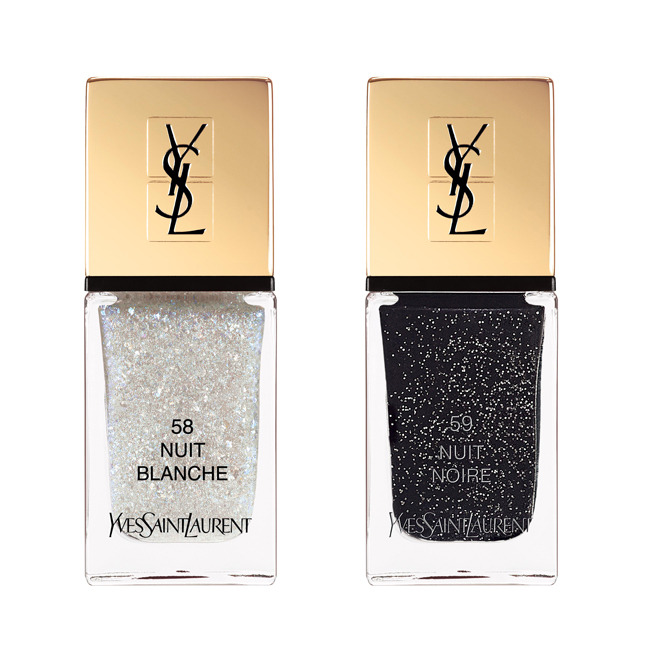 Также в весеннюю коллекцию YSL вошли два оттенка лака La Laque Couture с романтичными названиями «алмазная пыль» и «звездное небо». Кстати, если присмотреться к черному лаку с мелкими, лаконичными блестками, то действительно можно увидеть ночное небо с россыпью созвездий. Попробуйте!