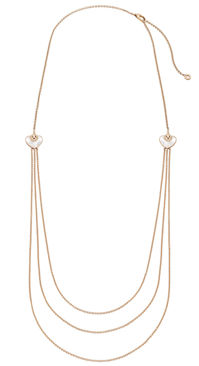 Лимитированные праздничные коллекции уже давно стали традиционными и ожидаемыми у большинства дизайнерских домов. Итальянские ювелиры Дома Bvlgari не стали исключением и выпустили свою небольшую коллекцию украшений из розового золота в рамках серии Bvlgari-Bvlgari. В нее вошли два кольца и две подвески с тонкими цепочками-ролло, а также изящнейшее колье-сортуар.