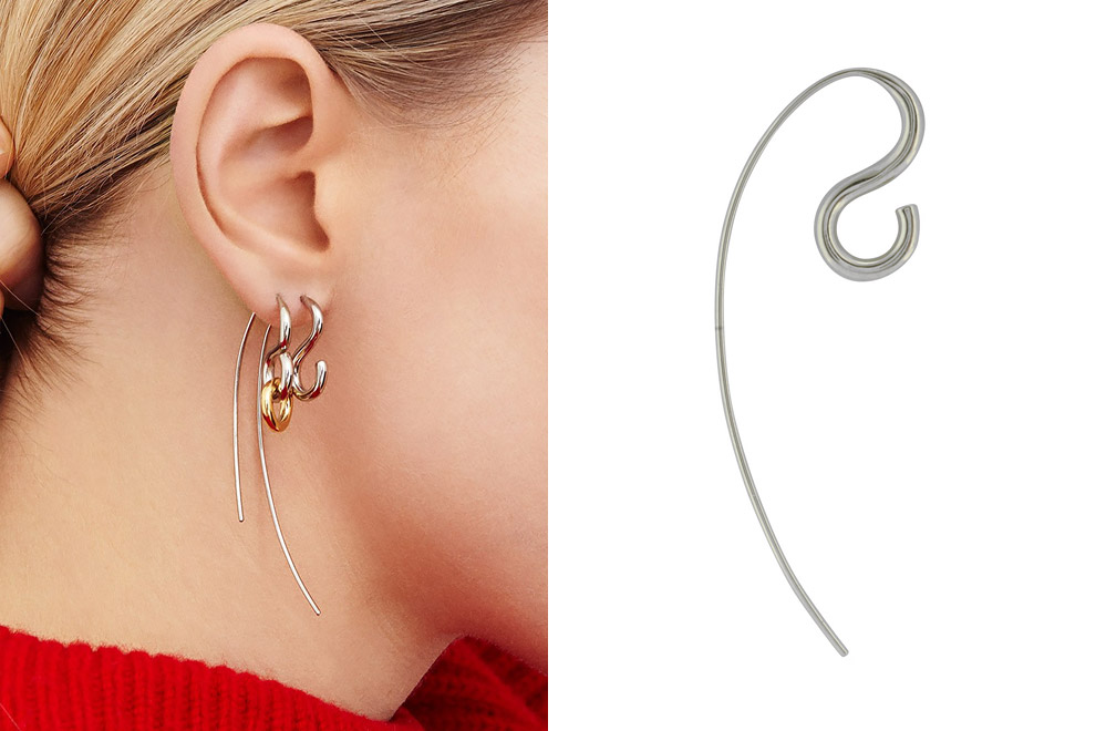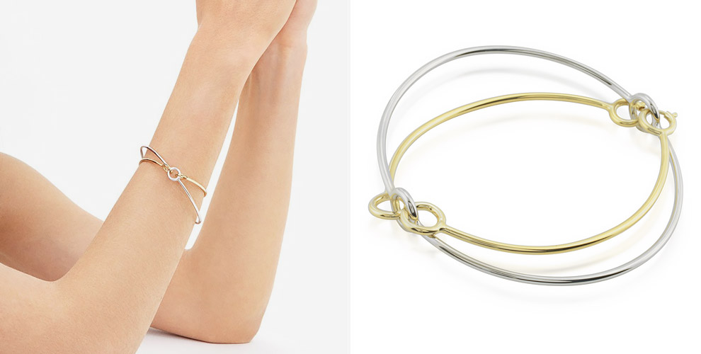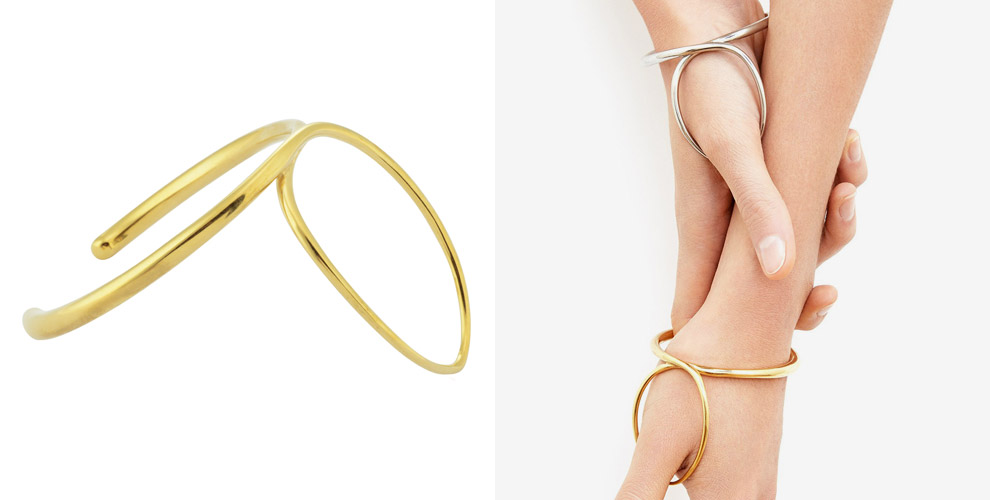 Украшения из осенне-зимней коллекции Сharlotte Сhesnais более всего напоминают ювелирные скульптуры – никаких бриллиантовых паве, только безупречность форм и лаконичность дизайна. Чуть более дюжины изделий – браслеты, кольца, серьги и серьги-каффы – казалось бы, повседневные, но каждое украшение со своей изюминкой. Особенно интересны двухцветные кольца Three Lovers, которые надеваются сразу на два пальца, и браслеты в ломаных «гнутых» линиях, замысловато обхватывающие одновременно запястье и ладонь. Впрочем, смотрите и наслаждайтесь сами!