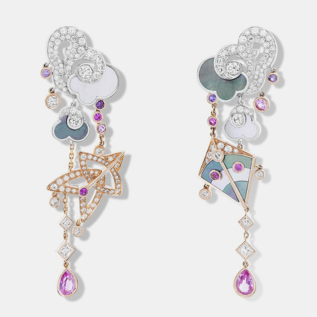 Воздушный змей – не только захватывающая игрушка из нашего детства – прекрасный яркий лоскут, взмывающий в самое небо. В некоторых восточных культурах он выступал частью религиозных ритуалов, как посланник молитвы людей к богам. А на этот раз воздушный змей вдохновил дом Van Cleef and Arpels на создание коллекции, которую так и назвал - Cerfs-Volants.
