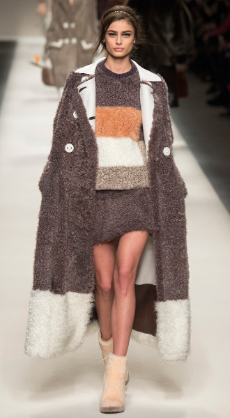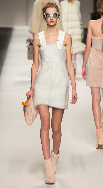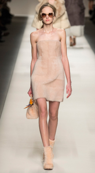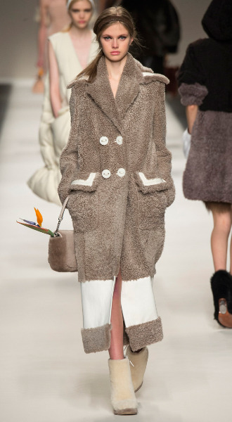 Овчина – не частый гость на высоком подиуме. Дизайнеры, как правило, обходят стороной этот недорогой и практичный мех, отдавая предпочтение признанным королям меховой моды – соболю, норке и шиншилле. Однако это не остановило Карла Лагерфельда от создания капсульной коллекции для Fendi, в которой практически все вещи выполнены из овчины, включая шубки, обувь, сумки, свитшоты и даже платья.
