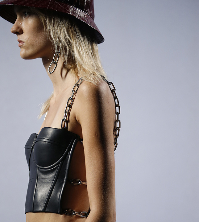 В первую коллекцию под брендом Alexander Wang вошли крупные, нарочито грубые серьги-цепи, колье и два браслета с замками. В новой линии Вэнг остается верен своей любимой суровой эстетике гранжа. Все украшения выполнены из полированного золота и серебра, никаких камней не использовано.