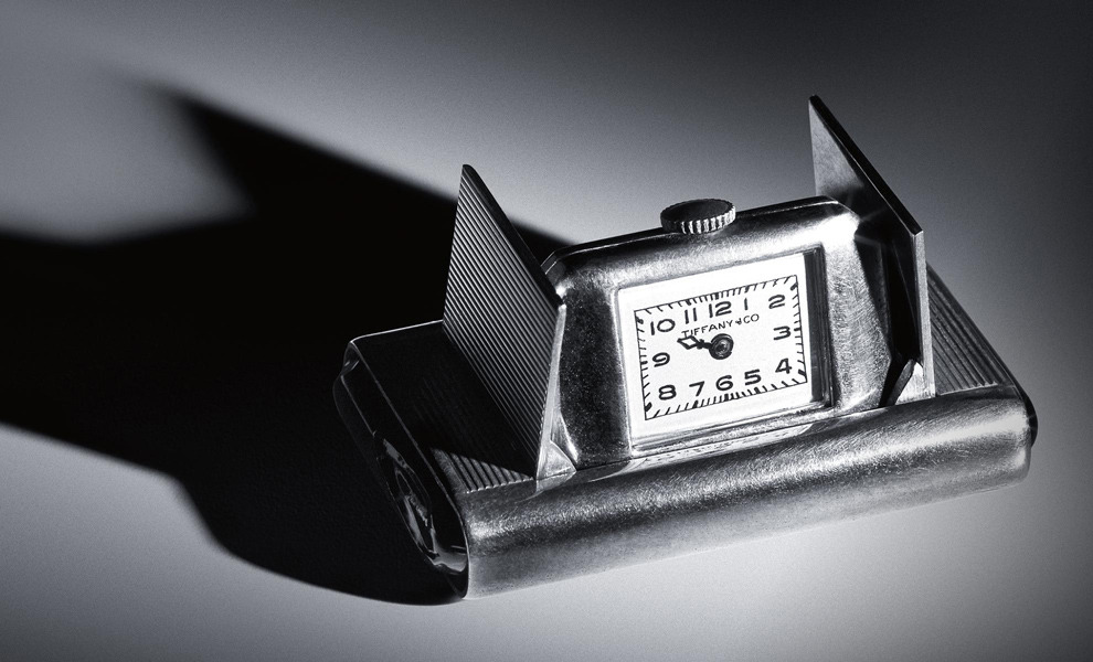 Дорожные часы Tiffany & Co., складывающиеся на манер портсигара, служили изысканным и статусным подарком и были весьма популярны у успешных бизнесменов и, конечно, первых джетсеттеров. Массивные часы были выполнены в стиле позднего ар-деко в характерном американском его прочтении.