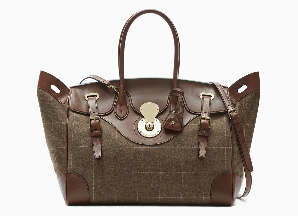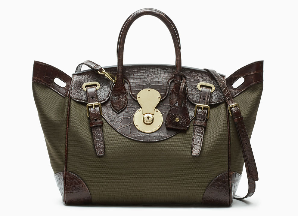Три безусловных осенних тренда – клетка, милитари и мебельный жаккаард – обновили культовую сумку Ricky Ralph Lauren. В мини-линейку вошли три сумки, выполненные из разного типа текстиля. Одна сумка сделана из клетчатой ткани и отделана телячьей кожей, вторая – из нейлона цвета хаки со вставками из кожи крокодила, третья – из роскошного жаккарда с цветочным принтом.