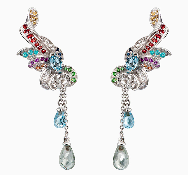 Передать цвета осени в драгоценностях для Carrera y Carrera совсем не сложно, поскольку любимые металлы ювелиров марки – желтое и розовое золото. А природа сама подсказала ультрамодные асимметричные формы сережек, колец и подвесок на тонких цепочках. Из цветных самоцветов выбраны рубины, желтые сапфиры, оранжевые гранаты, дымчатый кварц, аметисты и топазы. Особенно интересно решение, которое ювелиры Carrera y Carrera нашли для украшений из белого золота, в которых осенние мотивы переданы не цветовой гаммой, а скульптурной тонкостью только что упавшего с дерева листа.
