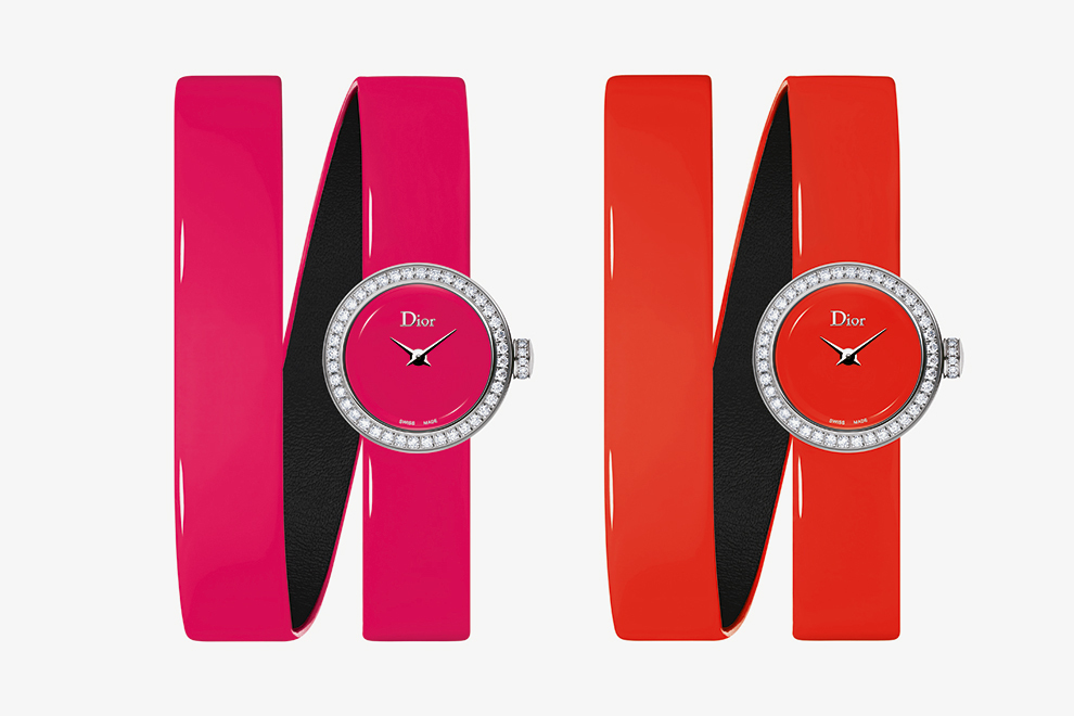 Dior выпустили летнюю коллекцию часов из культовой линии La Mini D — на этот раз на ремешках из лаковой кожи. В новинках лаконичность возведена в высшую степень: только пара тонких стрелочек, логотип и изящный бриллиантовый безель. Часики представлены в трех вариантах: классические La Mini D на черном ремешке, но не атласном, а лаковом, и на лаковых ремешках в два оборота в двух неоновых оттенках: розовом и оранжевом.