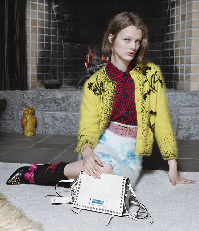 Поклонницы Prada без труда узнают голубую бирку, которая раньше скрывалась под пятками туфель и на внутренней стороне платьев. Теперь она – главная героиня новой линии сумок Prada Etiquette. В первую коллекцию вошли две модели – лаконичный шопер и мягкий мессенджер – в нескольких размерах и сдержанных универсальных цветах: белом, черном, серо-голубом и коралловом. А знаменитый голубой ярлычок заменил традиционный металлический логотип на внешней стороне каждой сумки.
