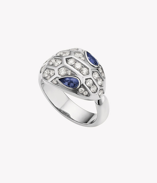 Культовая коллекция драгоценных змей Serpenti получила ежегодное обновление. Сезонные коллекции – это не haute joaillerie, а украшения, которые, по замыслу креативного директора Bvlgari Лючии Сильвестри, могут быть и повседневными, и вечерними. Главное – их можно и нужно носить. Новинки коллекции – принявшие форму кольца, браслета и колье «ледяные» гадюки из белого золота с бриллиантовой чешуей и сапфировыми глазами.